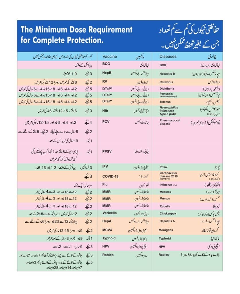 حفاظتی ٹیکوں کی کم ازکم تعداد